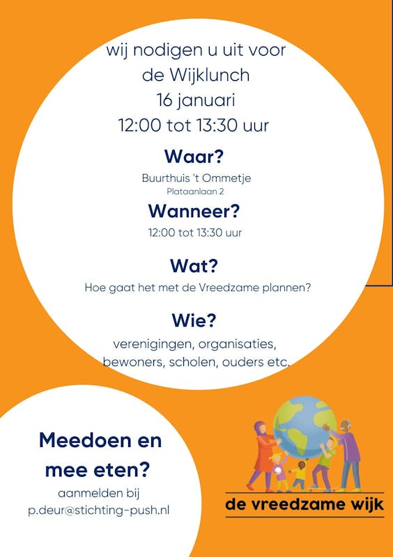 Voor organisaties en bewoners van de wijken Kooistee en Struyten in Hellevoetsluis organiseren we op 16 januari tussen 12 en 13:30 uur een Wijklunch.