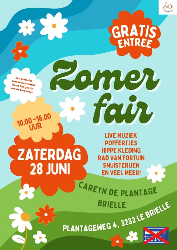 Zaterdag 28 juni aanstaande is het weer zover. Een gezellige zomerfair bij Careyn de Plantage in Brielle. Iedereen is van harte welkom van 10.00 - 16.00 uur. Win een rondrit in een oldtimer, geniet van countrymuziek, waag een gokje bij het rad van fortuin en eet poffertjes in het zonnetje. De opbrengst van deze fair komt grotendeels ten goede van onze bewoners. Tot dan!