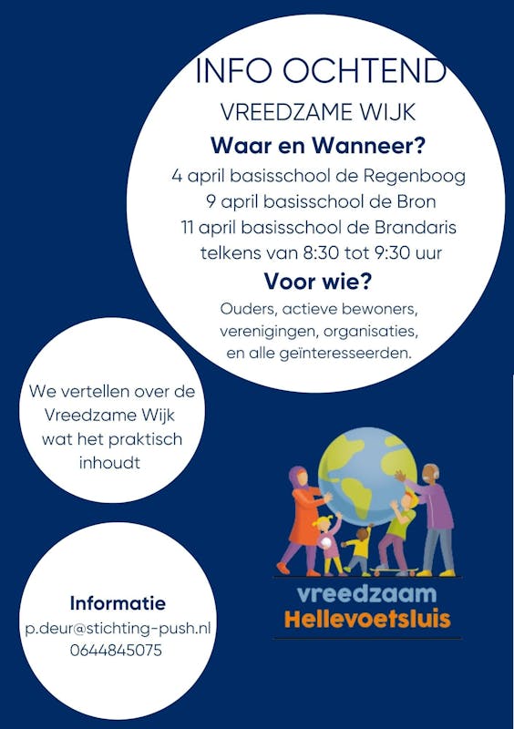 We organiseren een aantal info ochtenden voor iedereen die meer praktische informatie wil over de Vreedzame Wijk in Kooistee en Struyten.