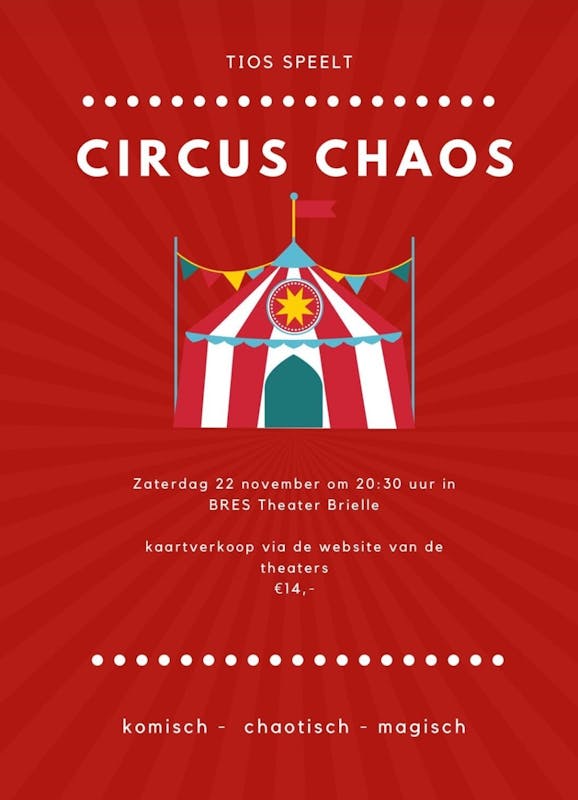 Theater groep Tios speelt een gezellig, onvoorspelbaar theaterstuk; Circus Chaos. Bestel kaarten via het BREStheater.