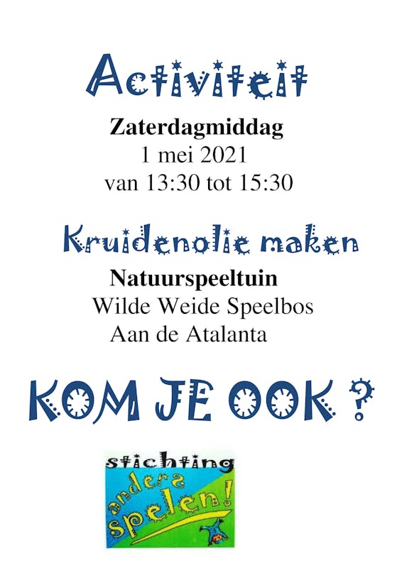 Kinderen voegen kruiden (o.a. uit onze Heemtuin) toe aan voedingsolie in een flesje en mogen dit meenemen.