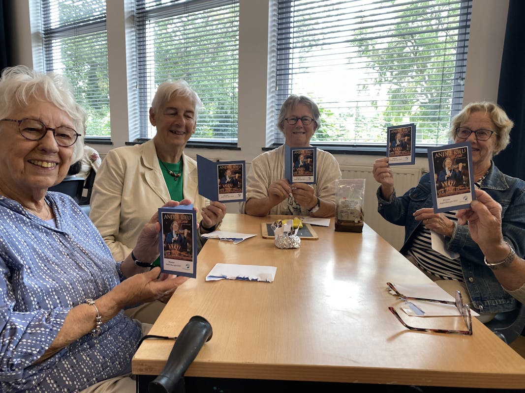Het was alweer de 3e keer dat ze naar de Andre Rieu bioscoop versie vanuit Sportstichting Je eigen Pad zijn geweest. Voorafgegaan door een heerlijke luxe lunch met broodjes met zalm en brie, krentenbollen, jus d’orange en nog veel ander lekkers. Deze werden aangeboden vanaf het rijdende lopende buffet. Daarna werd er een Andre Rieu quiz gehouden waarin wetenswaardigheden over hem en zijn concert werden bevraagd. Er werd serieus met elkaar overlegd en omdat er teams waren gemaakt werd de kennis over Andre goed gedeeld met elkaar.