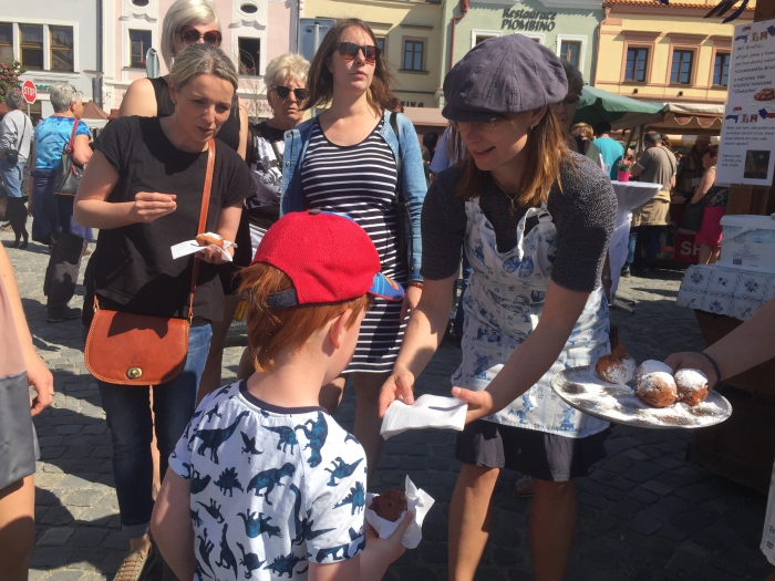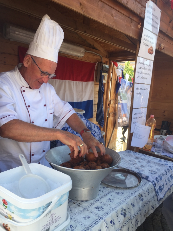 Als dank voor de jaarlijkse kerstboom uit onze zusterstad Havlickuv Brod heeft een Brielse delegatie van o.a. leden van het HBBC comite op 8 mei (bevrijdingsdag in Tsjechie) oliebollen gebakken en uitgedeeld op de Markt in Havlickuv Brod