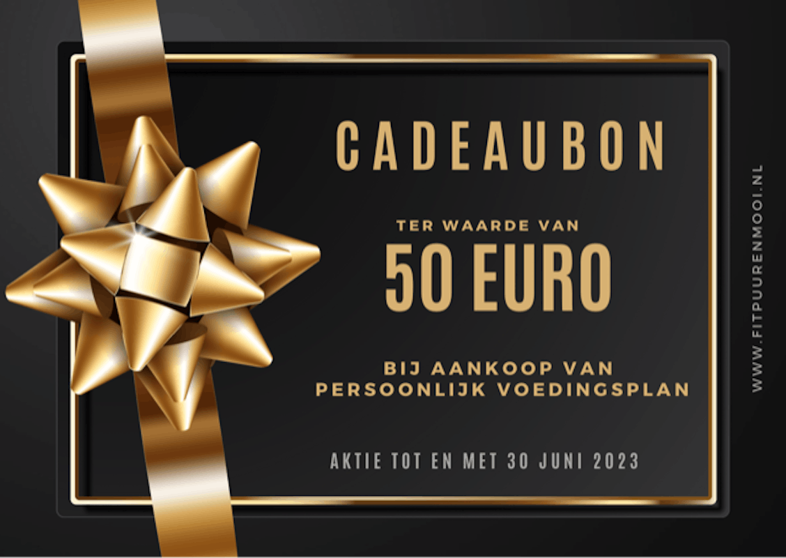 Zet nu de stap en start met je persoonlijk voedingsplan. Maak gebruik van de actie en ontvang een cadeaubon ter waarde van 50,00 euro!