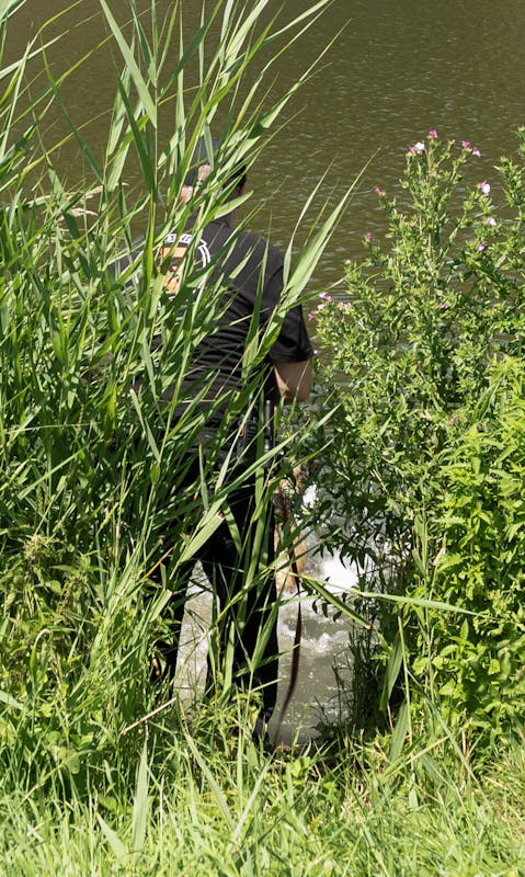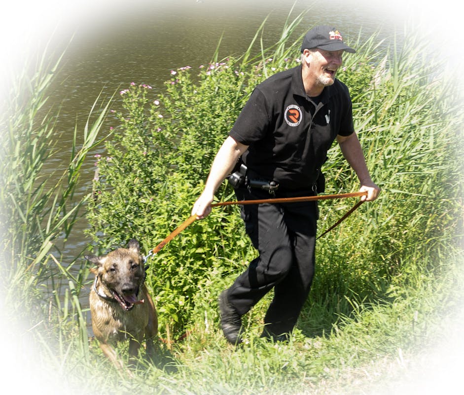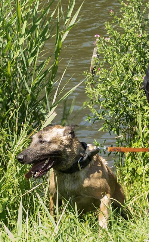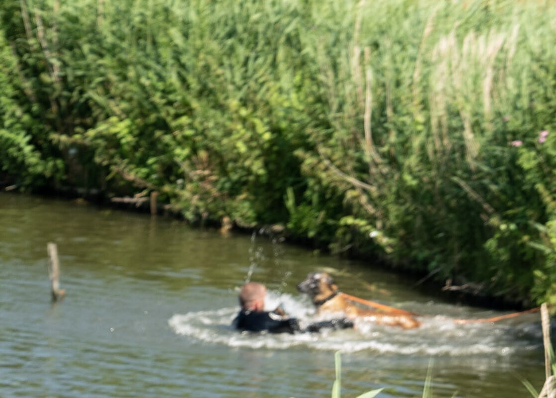 Het slotspektakel is het pakwerk in het water! De pakwerker verstopt zich in het riet in het water, en de honden weten hem feilloos te vinden. De honden kunnen meteen afkoelen van hun inspanningen tijdens het warme weer. Ook hier straalt het plezier van de begeleider en de hond weer af.