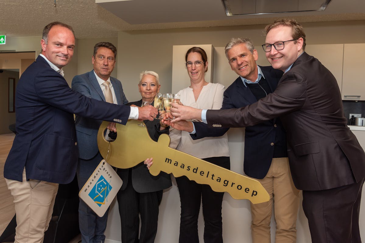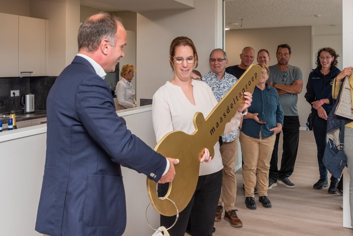 Tijdens de bijeenkomst overhandigde directeur Jaap-Jan Smit van BAM Wonen symbolisch een grote sleutel aan bestuurder Ruud van Nieuwaal van Maasdelta Groep. Daarmee werd de nieuwe vleugel officieel opgeleverd aan de opdrachtgever. Vervolgens gaf Ruud van Nieuwaal de sleutel door aan directeur Kim Albers van Careyn, die de vleugel namens de organisatie in ontvangst nam. Careyn huurt de nieuwe vleugel van Maasdelta en neemt deze binnenkort in gebruik.