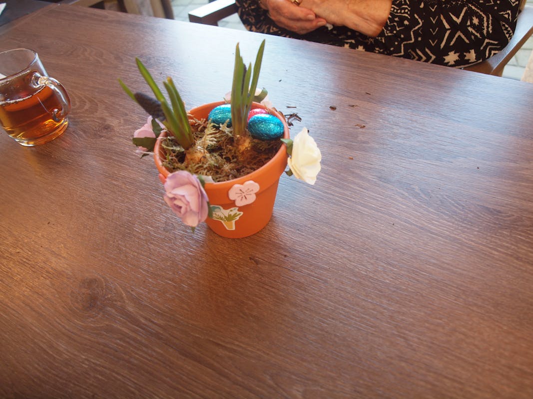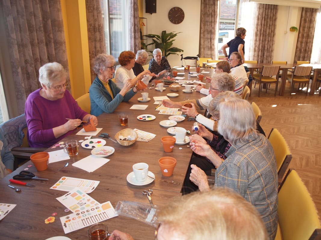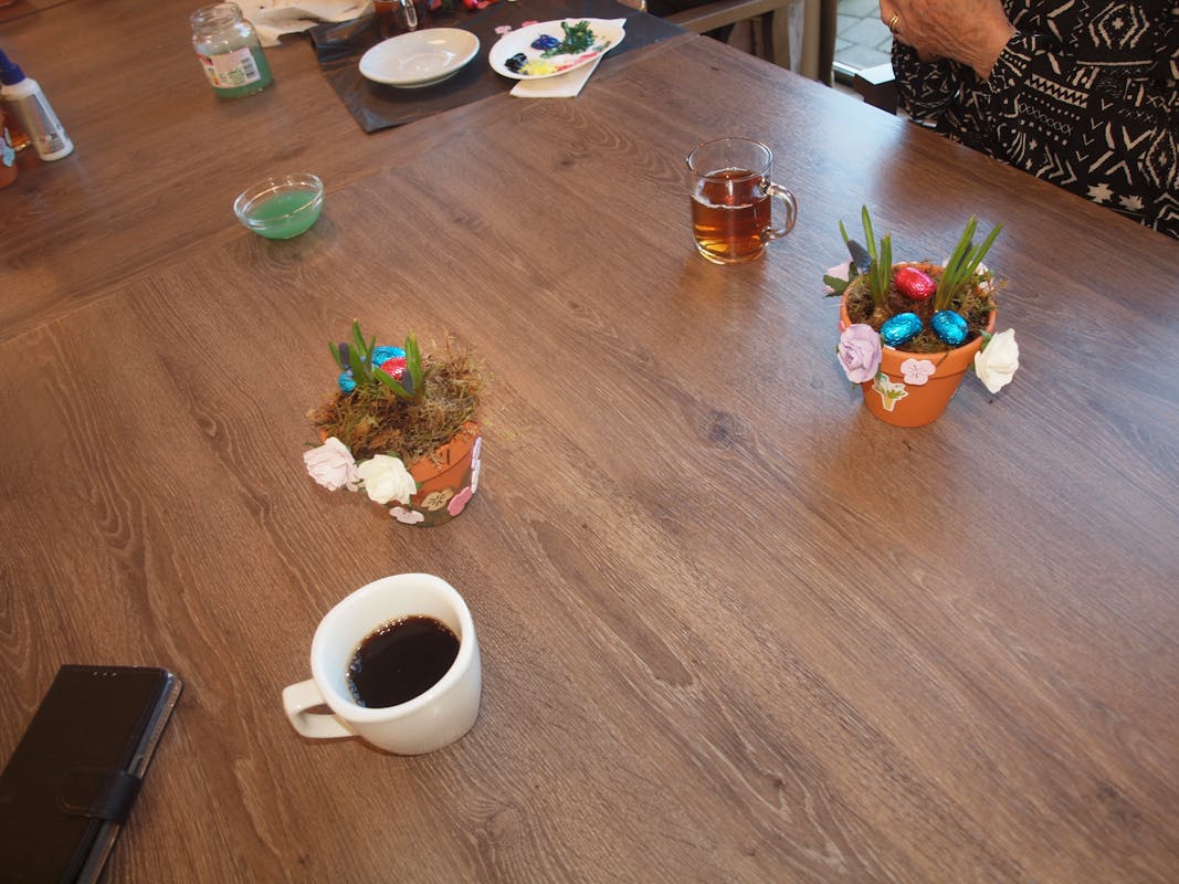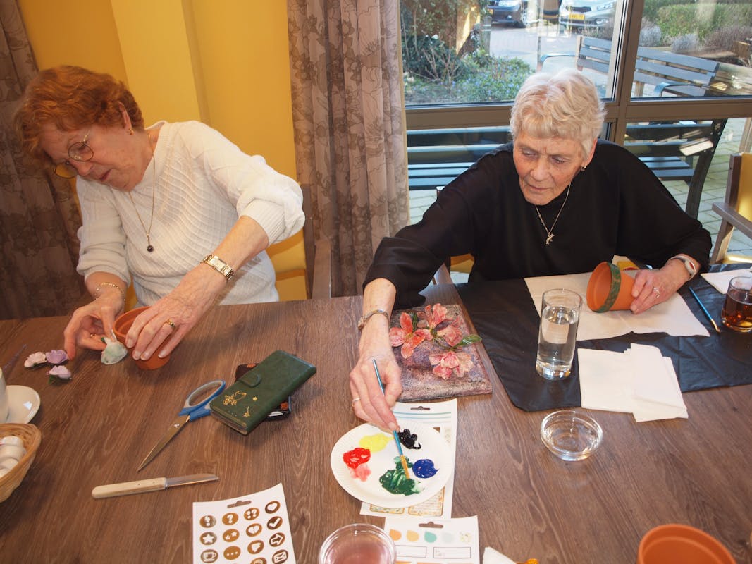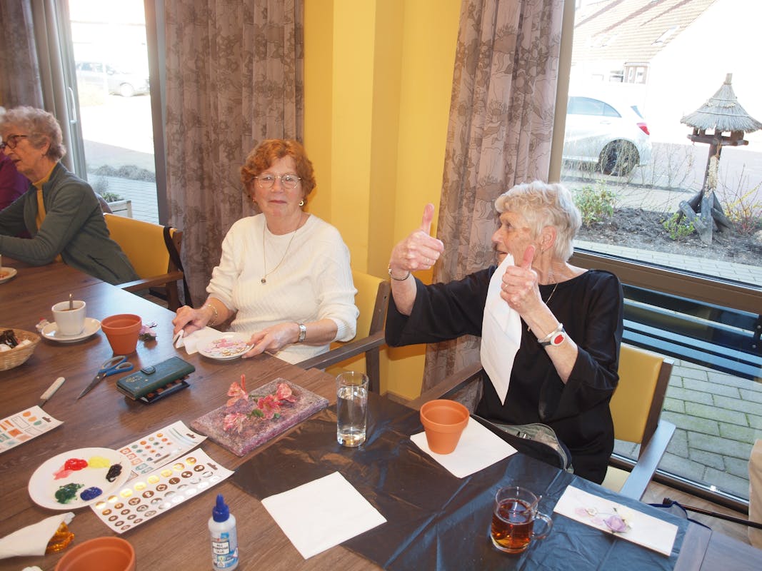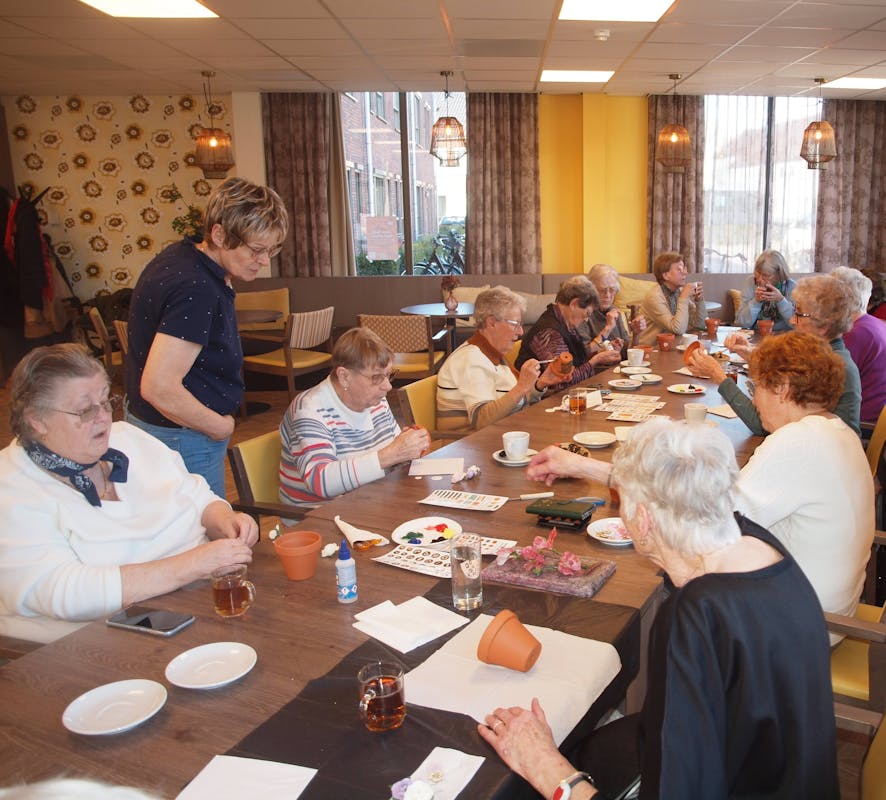 Bezoekers hadden een geweldige middag op het Fijnjetezien-terras. Tijdens het schilderen, plakken en versieren van de bloempotjes konden ze gezellig kletsen en genieten van een kopje koffie of thee. Het was een ontspannen en inspirerende middag voor jong en oud.