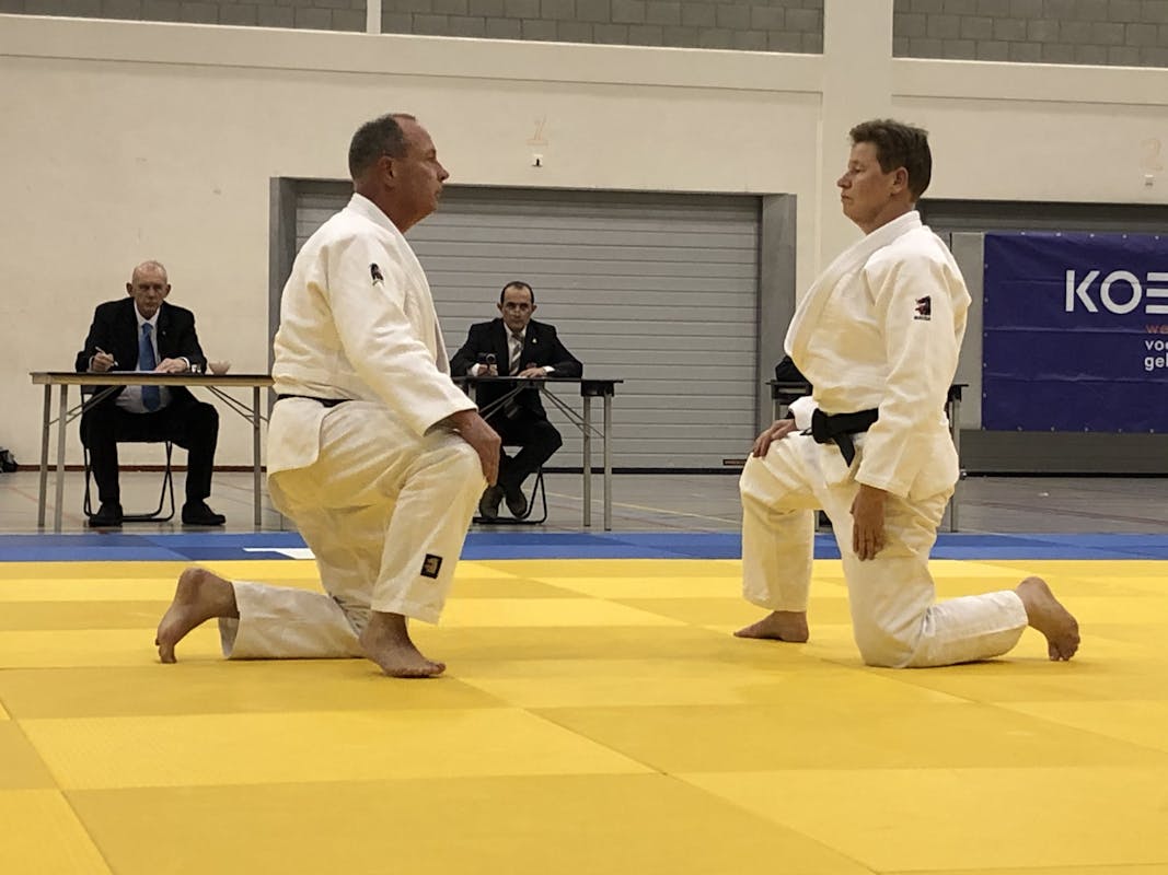 Met trainingsmaatje van vroeger Hans Lugtenburg die tori was behaalden Hans en Pia met het katame-no-kata (het zgn grondkata), een eervolle 6e plaats. Nog veel beter ging het met uke Niels Neumann waarmee het kime-no-kata (het kata van de verdediging) werd gedemonstreerd. Een bronzen plak was het resultaat.