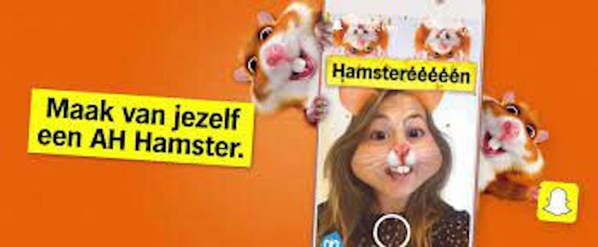 Verkleed als hamster naar een filiaal van AH, een heuse puzzeltocht in het filiaal met aansluitend daarop op de foto met een AH medewerker.