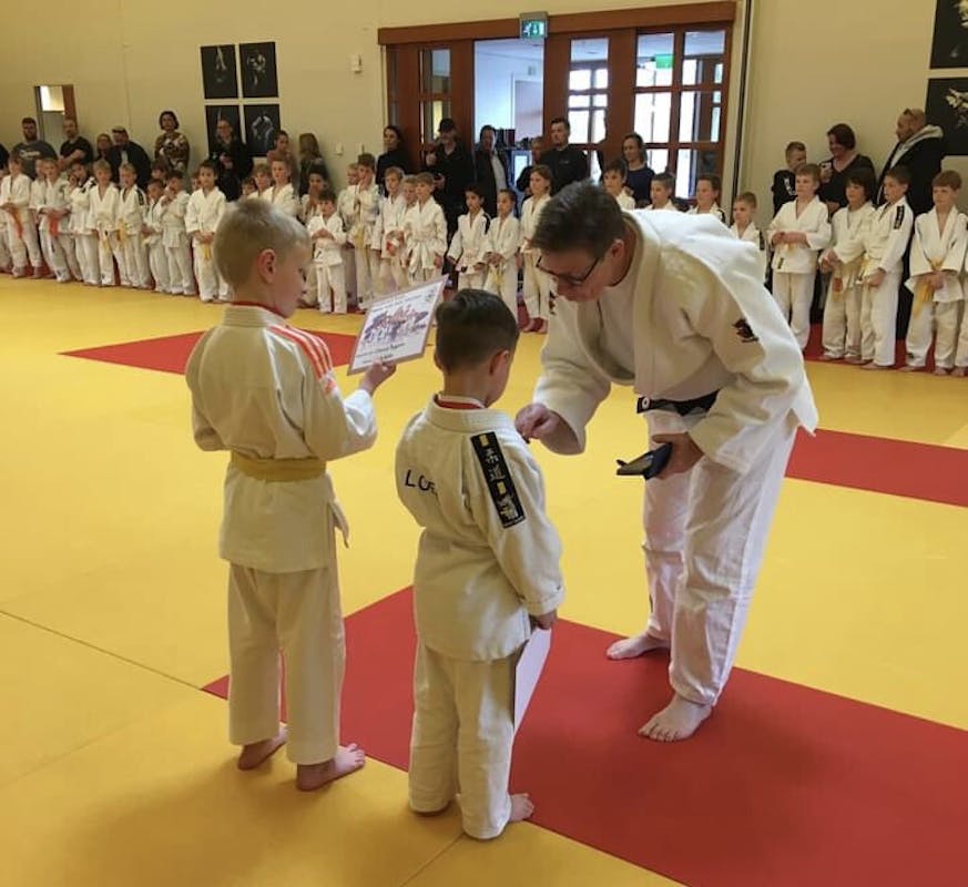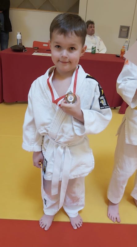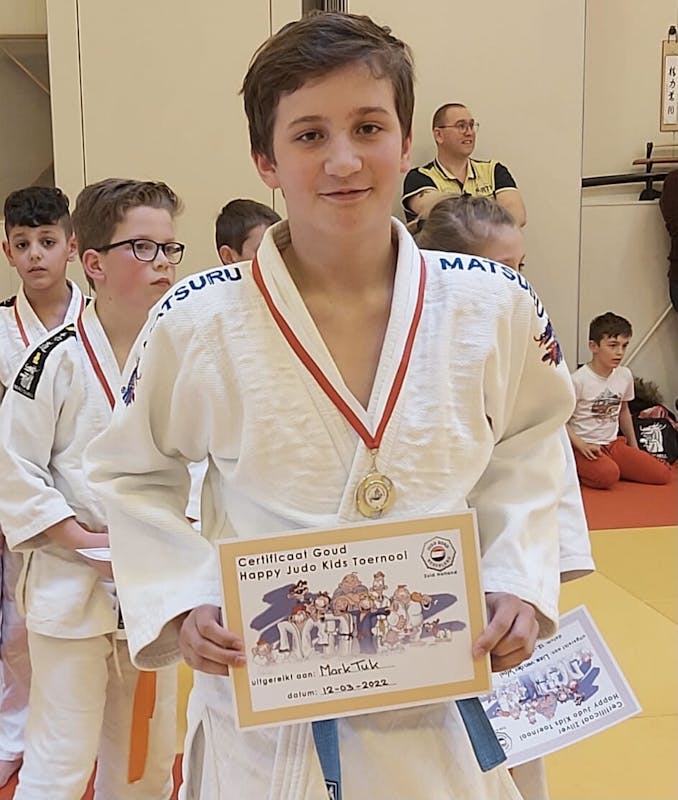 Bij reguliere judowedstrijden kan het zijn dat je na 10 seconden al op je rug bent gegooid en is de wedstrijd klaar. Misschien leuk voor de ander, maar je leert er niet zo veel van als je zo moet verliezen. Op de manier als bij de Happy Judo Kids leer je om de wedstrijden uit te spelen, ook als je een keer gevallen bent. Dit is een wedstrijdvorm die heel laagdrempelig is als een opstapje naar de echte judowedstrijden De wedstrijden duren nu altijd 2 minuten en dan probeer je zo goed mogelijk om bij de ander een judoworp of greep te maken. Afgelopen zaterdag traden 9 judoka’s van Sportstichting Je eigen Pad in Oud-Beijerland aan bij de Happy Judo Kids.. Zo leer je de regels en ook hoe het is om eens met iemand anders een randori (stoeiwedstrijd) te maken ipv je judovrienden van de eigen club. Je krijgt punten voor elke wedstrijd en bij 20 punten krijg je een bronzen medaille, voor 50 punten een zilveren en 80 punten is goed voor een gouden medaille. Dan heb je genoeg ervaring opgedaan en mag je niet meer terugkomen. Op deze manier blijft dit soort wedstrijden voor de echte beginners. Bij Sportstichting Je eigen Pad zijn dit keer 2 bronzen medailles verdiend, nl door Loek de Ruiter en Mick Breen. Mark Tuk ging met goud naar huis.