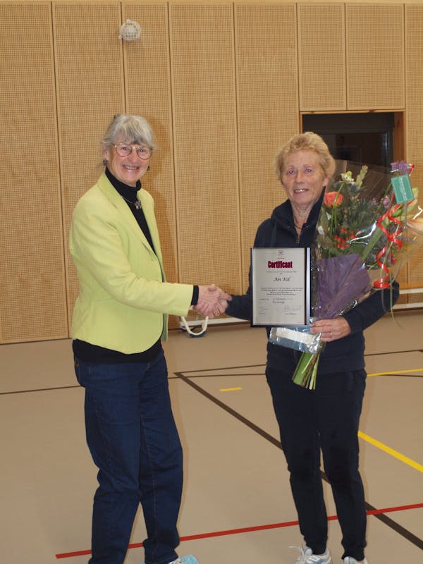 Voor al deze inzet ontvangt An een certificaat, een bloemetje en een geschenk van het Centrum Vrijwilligerswerk.