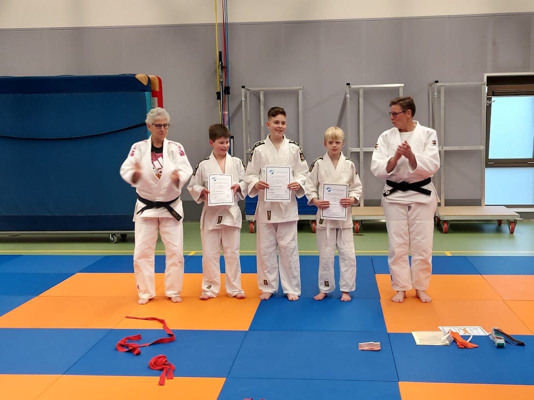 Geslaagd voor witte band: Siem Schokker, Leon Menichino, Daan Breure, Dani Boonstra, Luke van Vark, Thijs Garritsen, Dylano van Zanten, Niamh van der Meer. Gele band: Pim van Krieken, Bram Buik, Tim Stobbe, Julian de Waard, Niels Wijksma. Oranje band: Sem Breen, Lotte Poldervaart, Lisa Lubben, Felix Barbarowicz. Groene band: Naomy Kleijn.
