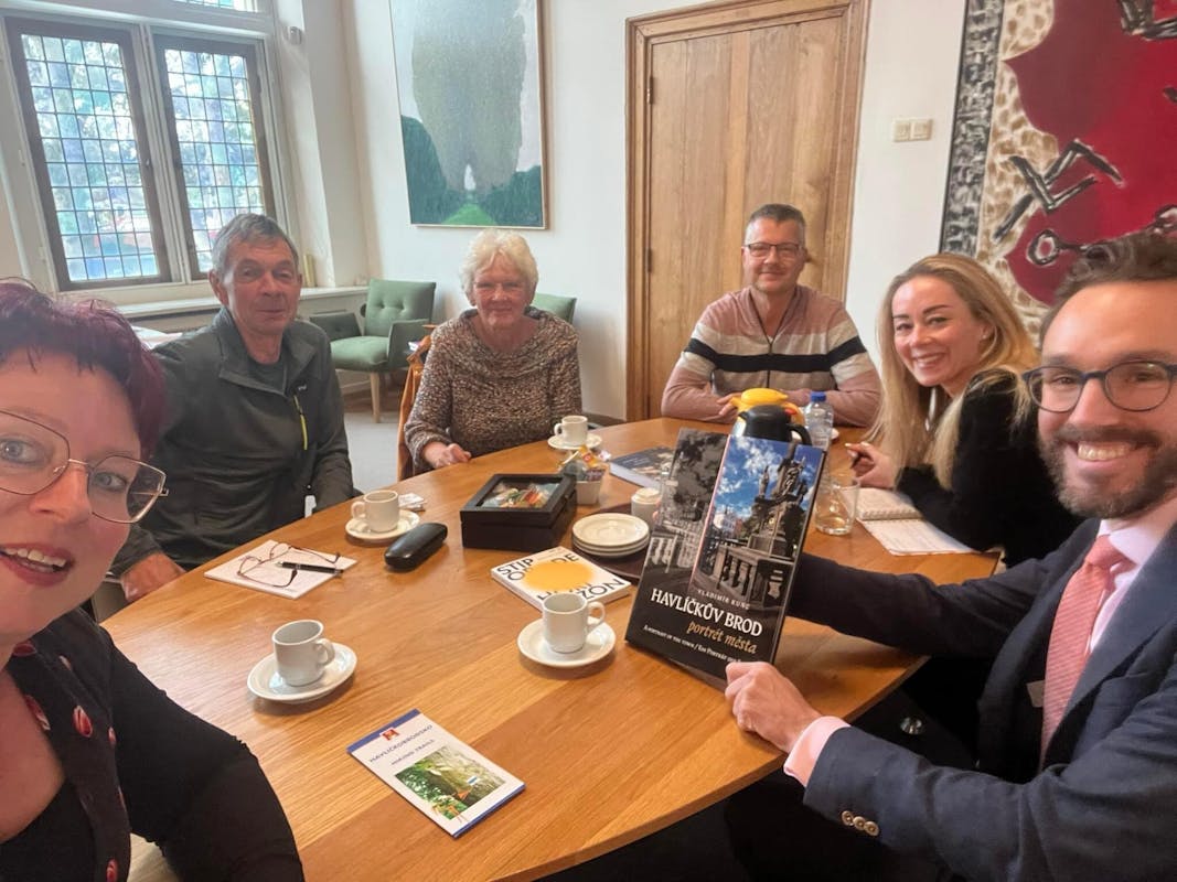 Het was een prettig gesprek hij was heel geïnteresseerd in de jumelage en zei blij verrast te zijn dat er in deze gemeente een stedenband bestaat. Zelf heeft hij goede herinneringen aan een stedenband die hij in een vorige woonplaats heeft ervaren. Dat was met een stad in noord Tsjechië waar hij bij een gastgezin heeft gelogeerd.