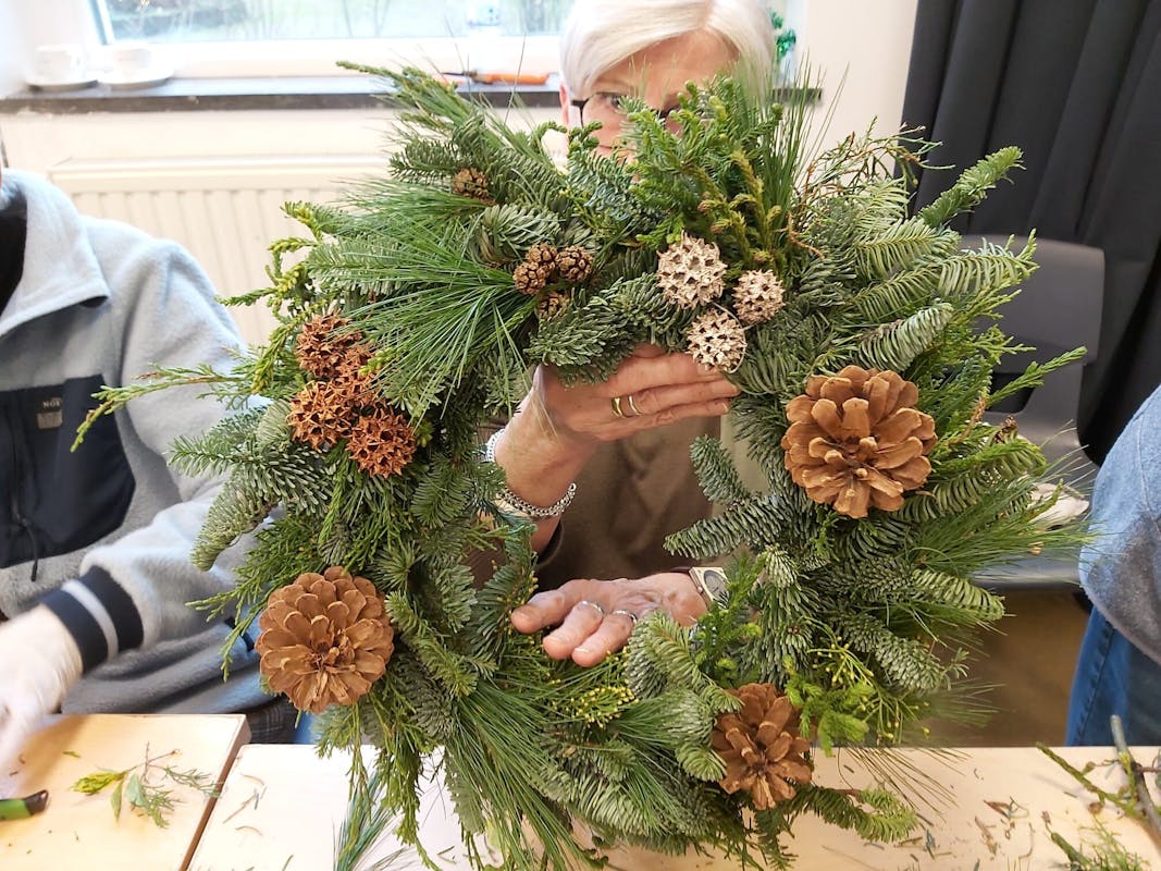 Afgelopen vrijdag rook het echt heerlijk naar dennenbossen, maar de kerstmuziek verraadde dat we gewoon in Nederland waren, in Tintestein, voor het maken van kerststukken. Sporters van Je eigen Pad en hun introducees waren hiervoor bijeengekomen. Een mooie deurhanger of een tafelstuk, de deelnemers maakten de mooiste creaties met dezelfde materialen, maar prachtige verschillen. Zowel beginners als de gevorderde schikker kon zijn hart ophalen en o.l.v. Jolanda Haeck een mooi stuk mee naar huis nemen. Bij het afscheid klonk vaak ‘tot volgend jaar’ en daar houden we ons aan.
