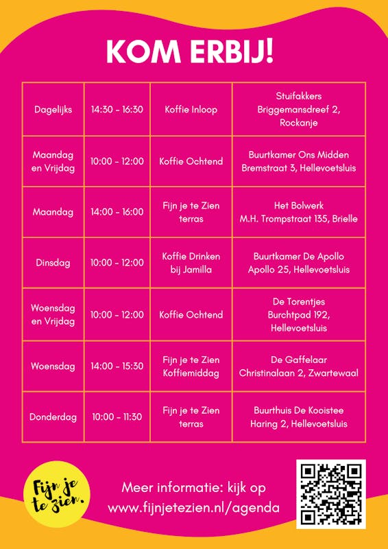 Op veel plekken binnen onze gemeente kunt u aanschuiven voor een kop koffie en een praatje. Ongedwongen, gezellig en soms zelfs helemaal gratis.