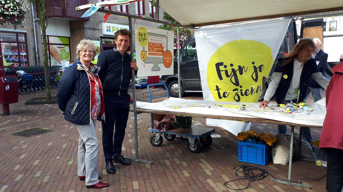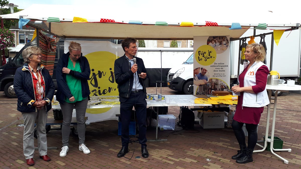 Vandaag was het dan zover in Rockanje op de wekelijkse markt, de lancering van de gemeente Westvoorne op de website fijnjetezien.nl. Het sociale platform is nu ook uitgezet en online in Westvoorne. Na de goede ervaringen in Hellevoetsluis en Brielle, was het voor de gemeente Westvoorne dan ook fijn om gelijk mee te kunnen helpen het bestaande succes van fijnjetezien.nl verder uit te gaan bouwen en hiermee de inwoners steeds meer tools in handen te geven om met elkaar te verbinden. Na lovende woorden van Hanneke Van Stokkom van mijnbuurtje.nl en wethouder Wilbert Borgonjen van Westvoorne werd er symbolisch een bord onthult met de uitleg over de website. Speciale dank voor wethouder Margriet den Brok voor haar aanwezigheid, Anja Hollanders en Marlon Frijters voor het prima organiseren van deze dag.