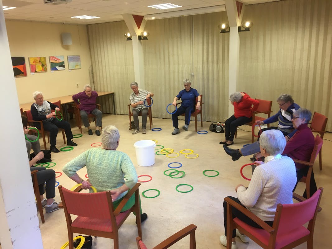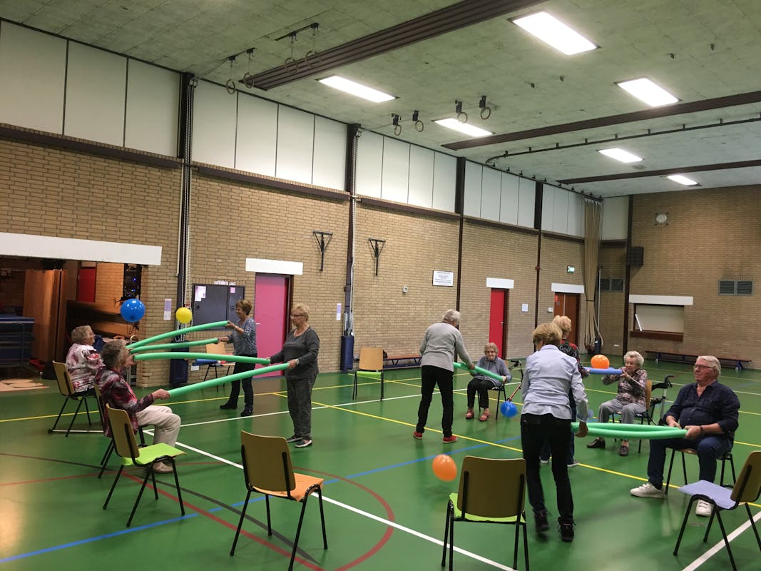 Deze les is uitermate geschikt voor mensen die niet meer zo lang achter elkaar kunnen staan of lopen. Zittend op de stoel doen we allerlei oefeningen om ons lijf in goede conditie te houden. We werken veel met coördinatie oefeningen voor een goede samenwerking tussen de linker en rechter hersenhelft. Alle spiergroepen worden aan het werk gezet: benen, armen, rug, buik, schouders, maar ook aan een goede zithouding wordt gewerkt. Er wordt muziek gebruikt als achtergrondmuziek maar ook om op het ritme ervan te werken. De muziek is uiteraard aangepast aan de doelgroep. Momenteel is onze jongste deelnemer 60 en de oudste 94 jaar. Laat je leeftijd je dus niet weerhouden om mee te komen doen. de les wordt gegeven op woensdagochtend van 11.00-12.00 uur in de sportzaal van de Gaffelaar te Zwartewaal. de eerste 2 lessen zijn gratis