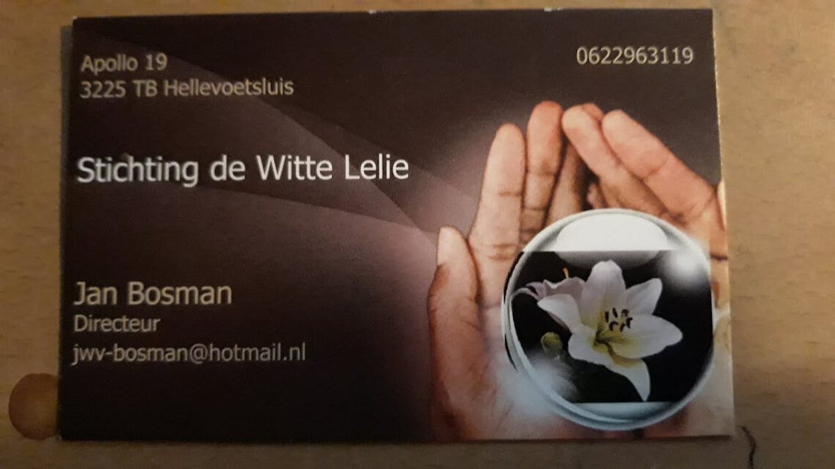 Meer informatie: Stichting ” De Witte Lelie”, Apollo 19, 3225 TB Hellevoetsluis Tel: 06-22.96.31.19