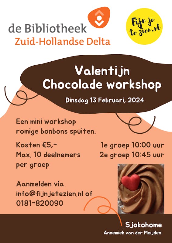 Kom en doe mee! Dus, ben je op zoek naar een leuke activiteit om samen met anderen te doen en wil je graag je eigen bonbons maken? Kom dan naar de Valentijn Workshop: Bonbons maken en geniet van een ochtend vol gezelligheid, creativiteit en heerlijke chocolade. We hopen je te verwelkomen en samen een geweldige tijd te hebben!