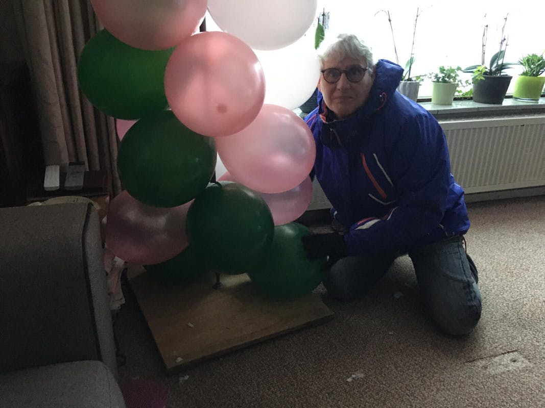 Eerst waren er de coronamaatregelen, daar werd een heel plan voor opgesteld om een coronaproef feestje te vieren. Dmv een drive-through, dwz auto’s komen even toeteren voor het grote raam bij de kamer en de ‘visite’ zwaait even is een mogelijkheid. De andere mogelijkheid was om heel even bij de buiten gereed staande ballonnenboog bij de partytent waar de jarige naartoe loopt en gaat zitten, met lekker kacheltje erin en een warme wollen plaid over haar benen, waarbij de autorijders in de auto blijven zitten en de jarige in haar stoel, zij kunnen zo een korte babbel maken met elkaar.