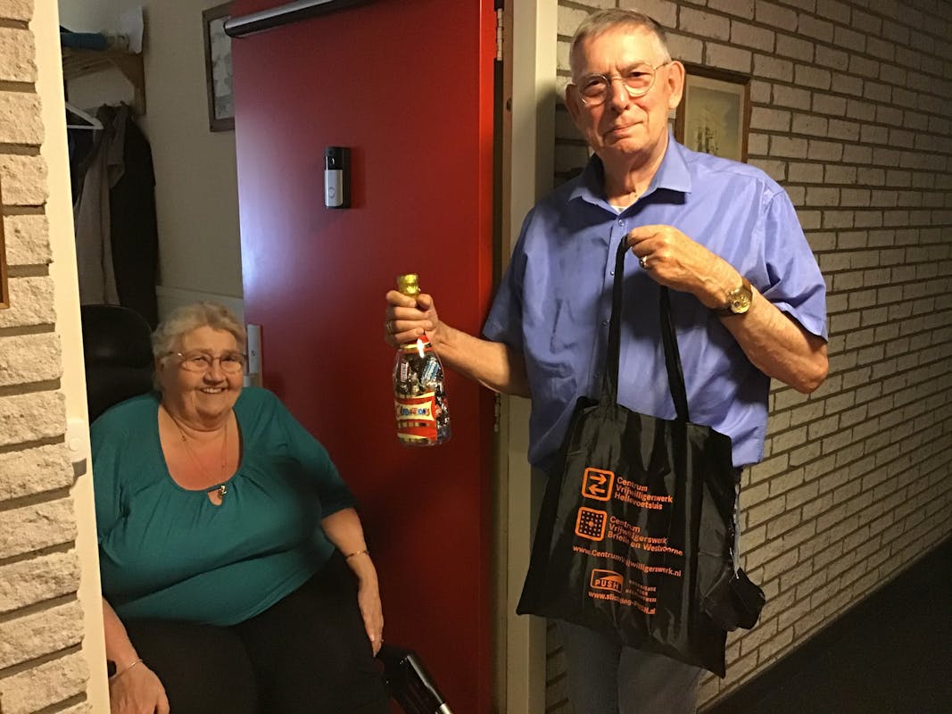 voor Koos Assenberg. De Buurtverbinders van Fijnjetezien kwamen hem een leuke attentie brengen. Koos is een van de vrijwilligers die een lintje ontvangt. Hij is jaren bij verschillende vereniging betrokken geweest als vrijwilliger en bestuurslid. Onder andere bij de carnavalsvereniging, voetbalvereniging en biljartvereniging in Zwartewaal. Voorzitter van de EHBO enz. De laatste tijd was hij voorzitter van de bewonersvereniging Hofstaete. Daarnaast is hij ook nog fulltime mantelzorger. Hij is benoemd tot Lid in orde van Oranje Nassau.