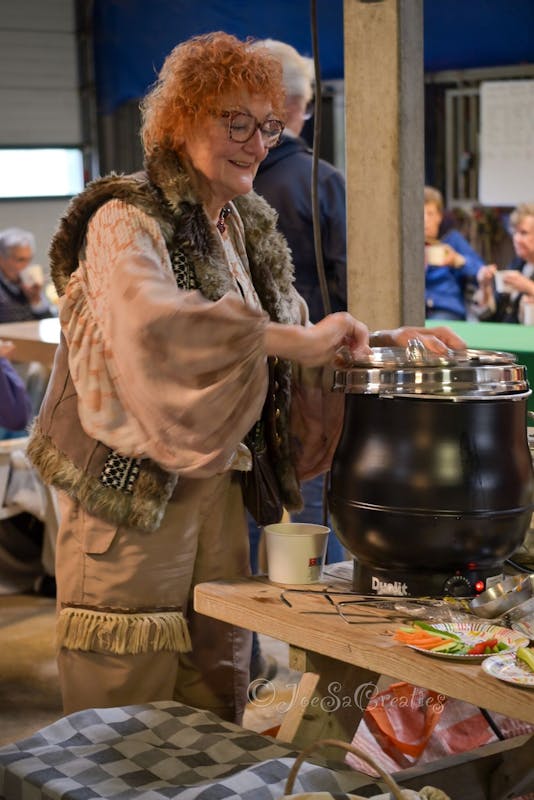 Ondanks het druilerige weer was de opkomst vrolijk en vol enthousiasme! Iedereen had er ontzettend veel zin in. Naast de goedgevulde groentesoep, broodjes en krentenbollen, die met liefde waren gemaakt door de Soroptimisten, werden de gasten nog extra in de watten gelegd door Anja, onze gastvrouw van de dag. Terwijl we genoten van de soep, vertelde Anja een boeiend verhaal over het wel en wee van haar alpaca’s.