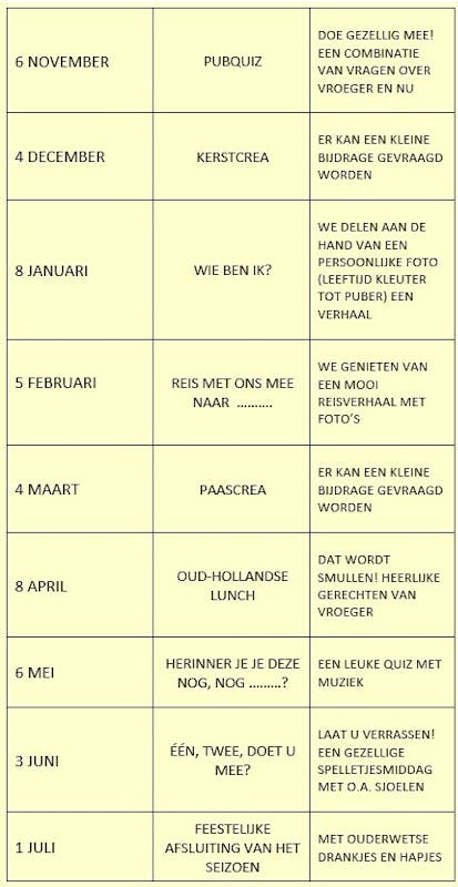 Wil je graag deelnemen aan het Fijnjetezien-terras of een bijdrage leveren aan ons initiatief? Dat kan! Kom gewoon langs en schuif gezellig aan. Je kunt genieten van een kopje koffie of thee en deelnemen aan het programma met leuke activiteiten. Heb je zelf ideeën voor activiteiten of wil je graag meehelpen in de organisatie? Laat het ons weten! Neem contact op met Mirjam Stolk via en zij vertelt je graag meer over hoe jij kunt bijdragen aan het Fijnjetezien-terras.