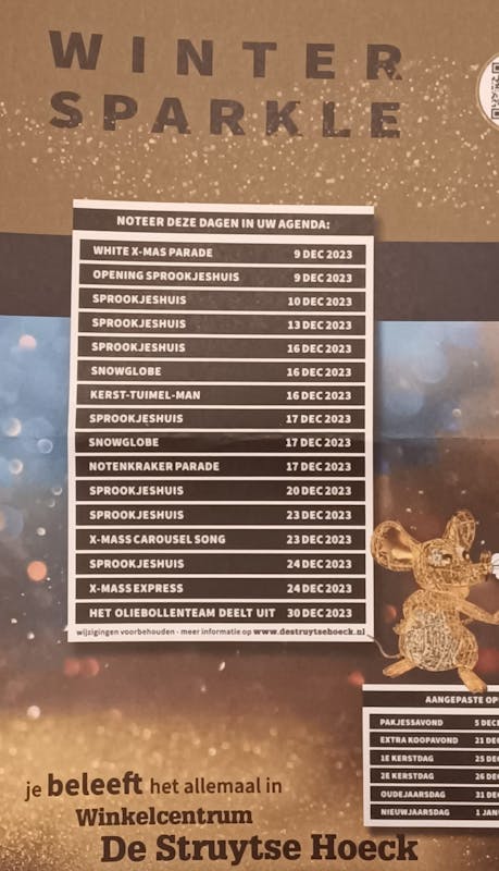 Nog dit jaar voor oud en nieuw, even lekker genieten van onze gezellige activiteiten die te vinden zijn in winkelcentrum De Struytse Hoeck in Hellevoetsluis.