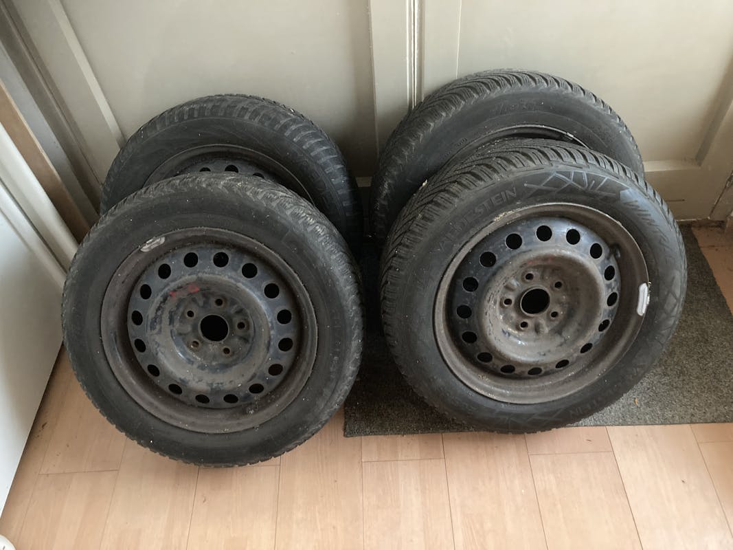 2 banden hebben nog een prima profiel, de andere 2 voldoen nog aan de norm, maar zijn wat meer gebruikt. De velgen zijn 16 inch. Banden 205/55